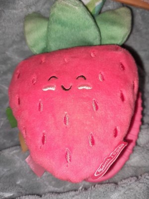 [This review was collected as part of a promotion.] This is the cutest little strawberry soft toy and teether! It has a Velcro strap so you can attach it to car seat, stroller, play gym, or anywhere!! It also has a mirror which my baby LOVES!