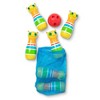 The always-happy Giddy Buggy caterpillar will bowl you over with his smiling face and this exciting kid-sized bowling set! The set includes six bowling pins, an easy grip bowling ball, game instructions, and a sturdy carrying case with handles. Little ones can have loads of fun as they set up the eight-inch bowling pins, roll the kid-sized ball, and knock 'em down! Melissa & Doug's bowling set is part of the Sunny Patch line of products, so it's made to be used both inside and outside. Kids can take it along on play dates, bring it to the beach or the park, or play with it indoors -- it makes a great rainy day activity! Durable construction means that the pins will stand up to endless tumbles. It's a great way to spend time with friends and family, or enjoy independent play. The game encourages hand-eye coordination and dexterity, and early counting skills. It's a great gift for kids ages two and older for hands-on, screen-free play.
