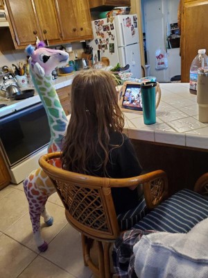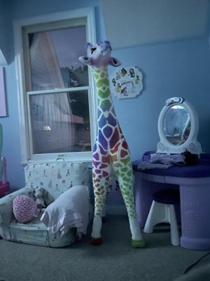 [This review was collected as part of a promotion.] My kids absolutely love their new jumbo rainbow giraffe. It is almost as tall as I am! It is a huge stuffed animal and they love it so far! Right now, it's in my hallway, but they love to keep it in their rooms too.