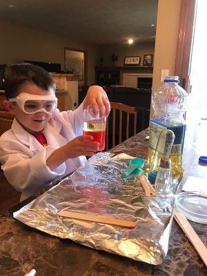Double Wow! Our seven-year-old granddaughter couldn't wait to put her lab coat on and do some experiments with her Poppy at the kitchen table!