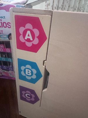 Perfect for mess-free imaginative pretend play, this innovative wooden vending machine play set, the Melissa & Doug Sort, Stock, Select Beauty Kiosk, DOES NOT CONTAIN REAL COSMETICS. It is packed with features and fun, including realistic-looking pretend play toy makeup accessories for eyes, lips, and face that let budding makeup artists imagine different looks and practice daily skin care and makeup routines! Open the back of the kiosk and stock it with nine double-sided play beauty accessories, including wooden lipsticks, pretend eye shadows (NO COLOR IS TRANSFERRED), flip-top lotion tube, and double-sided pouches. On the front, select an item, insert a color-matching play coin or bank card, press the corresponding letter and number button, and the play makeup drops into the collection drawer! No batteries required! There’s a sign that can be personalized and a reusable activity card for keeping track of what to stock, order, and how the pretend play beauty items are used. The sturdy kiosk measures 17 inches high x 12.5 inches wide x 5.5 inches deep, and requires no assembly. This vending play set is an engaging, hands-on way to help teach kids about cause-and-effect, and to encourage letter, number, and color recognition, sorting, matching, counting, and fine motor skills. All the pieces store in the vending machine for easy cleanup. This product is certified by the Forest Stewardship Council. FSC certification ensures that products come from responsibly managed forests that provide environmental, social, and economic benefits, and that forests are protected for future generations. Please note that FSC certification applies to new inventory only (FSC C156584)