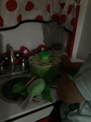 [This review was collected as part of a promotion.] I gave my two year old son this Melissa and Doug salad spinner to add to his little kitchen. With the help of his big sister, he learned to pull apart the lettuce, put it in the spinner, and push the button to spin it. He loves hitting the top button to spin his veggies! I love that it is well made and durable. The only problem he had was he liked to over stuff it and it would not spin. Since I gave it to him on his birthday last month it has been one of his most reached for kitchen accessory.