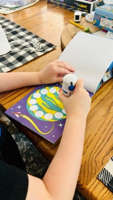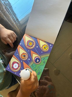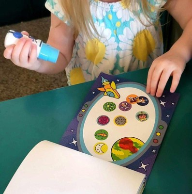 - A Whole New Way to Play with Stickers - Collectible toy stamper dispenses space-themed stickers on the 24-page astronaut activity pad and other creative art projects, no peeling required!