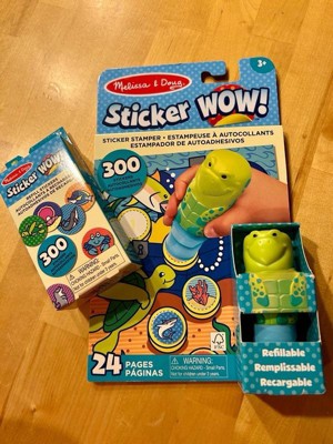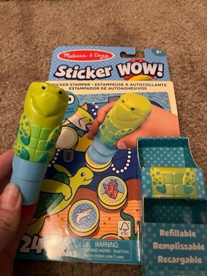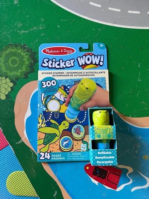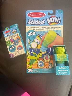 Melissa & Doug Sticker WOW!™ is a whole new way to play with stickers! Let the adorable, collectible Kelp the Sea Turtle stamp, stamp, stamp its way through 24 pages of fun-filled, ocean-themed counting, matching, and search-and-find activities. The refillable sticker stamper comes pre-loaded with a sticker stack of 300 assorted stickers – with 100 unique designs in every stack, each sticker is a surprise! Themed refill packs are sold separately and are compatible with any Sticker WOW!™ sticker stamper. Stickers are not reusable, but are easy to remove if necessary. Fill in the activity pages and use for creative art projects, such as bookmarks, posters, cards, and more. Easy-to-remove stickers and the convenient on-the-go format with built-in sticker stamper storage makes Sticker WOW!™ (patent pending) a great mess-free travel activity. Sticker WOW!™ promotes fine motor skills, encourages creative play, and it’s satisfying, fidget fun! This product is certified by the Forest Stewardship Council. FSC certification ensures that products come from responsibly managed forests that provide environmental, social, and economic benefits, and that forests are protected for future generations. Please note that FSC certification applies to new inventory only (FSC C156584)