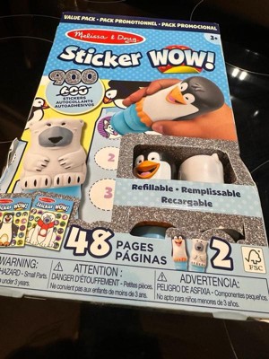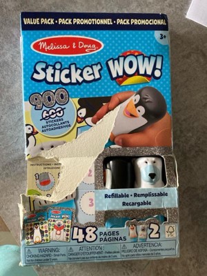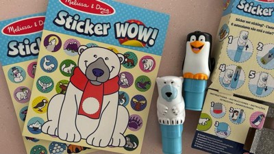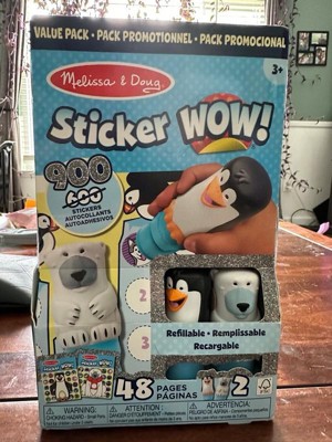 Melissa & Doug Sticker WOW!™ is a whole new way to play with stickers, and it’s twice the fun with the winter-themed two-pack! Let the adorable, collectible Tofu the Polar Bear and Licorice the Penguin stamp, stamp, stamp their way through two 24-page pads of fun-filled, winter-themed counting, matching, and search-and-find activities – 48 pages in all! The refillable sticker stampers come pre-loaded with a sticker stack of 300 assorted stickers each, plus two bonus sticker stacks with 150 extra stickers in each. That’s 900 stickers total! With 100 unique designs in every stack, each sticker is a surprise! Themed refill packs are sold separately and are compatible with any Sticker WOW!™ sticker stamper. Stickers are not reusable, but are easy to remove if necessary. Fill in the activity pages and use for creative art projects, such as bookmarks, posters, cards, and more. Easy-to-remove stickers and the convenient on-the-go activity pad format makes Sticker WOW!™ a great mess-free travel activity. Sticker WOW!™ (patent pending) promotes fine motor skills, encourages creative play, and it’s satisfying, fidget fun! This product is certified by the Forest Stewardship Council. FSC certification ensures that products come from responsibly managed forests that provide environmental, social, and economic benefits, and that forests are protected for future generations. Please note that FSC certification applies to new inventory only (FSC C156584)