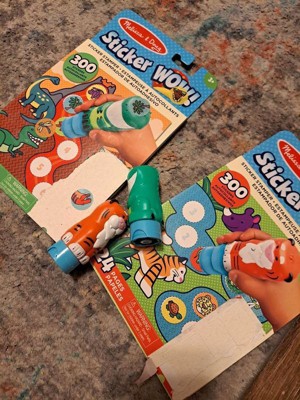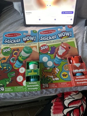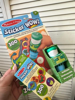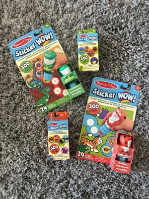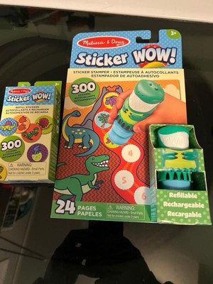 Melissa & Doug Sticker WOW!™ is a whole new way to play with stickers! Let the adorable, collectible Olive the Dinosaur stamp, stamp, stamp its way through 24 pages of fun-filled, prehistoric-themed counting, matching, and search-and-find activities. The refillable sticker stamper comes pre-loaded with a sticker stack of 300 assorted stickers – with 100 unique designs in every stack, each sticker is a surprise! Plus, this set is bundled with a refill pack of 200 EXTRA prehistoric-themed stickers (compatible with any Sticker WOW!™ sticker stamper) and an additional mini prehistoric-themed activity pad for even more Sticker WOW!™ fun. Stickers are not reusable, but are easy to remove if necessary. Fill in the activity pages and use for creative art projects, such as bookmarks, posters, cards, and more. Easy-to-remove stickers and the convenient on-the-go format with built-in sticker stamper storage makes Sticker WOW!™ a great mess-free travel activity. Sticker WOW!™ (patent pending) promotes fine motor skills, encourages creative play, and it’s satisfying, fidget fun!