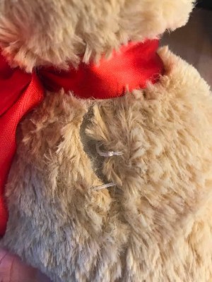 I gave this to my son yesterday, and it instantly became his best friend. This morning he brought it to me in tears. The seam going down the back is already split, and the stuffing is coming out. He also has shed little fiber hairs all over our microfiber couch. Not sure if I got a dud, but I'm so disappointed.