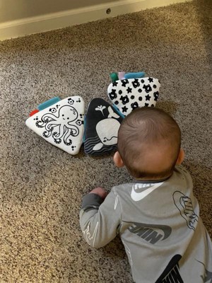 [This review was collected as part of a promotion.] I received this product for free from Influenster in exchange for my honest opinion and all I can say is that baby and I love it! It keeps my baby busy for hours not only during tummy time but also when he is on his bouncer. It has 3 soft multi-textured double-sided triangles that are connected side by side. One side of the triangles are black and white drawings which are great for those first early weeks of like so it can catch their attention and the other side are more colorful and interactive drawings like a crab with a mirror and a squeaky claw, under the sea with a pull-out fish hidden behind a pocket and an octopus with felt legs so baby can all types of motor and sensory stimulations. You can put it laying down on the floor or even standing up. It’s a great toy for all babies, even my toddler loves it. Five stars all across!