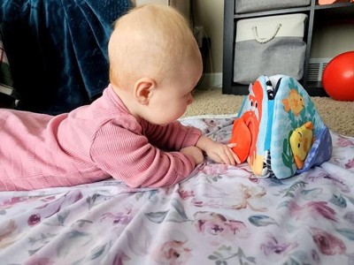 [This review was collected as part of a promotion.] I like the crinkle sound that the toy makes. Also with the colors and mirror was a nice touch that amused my 3 month old son. It's almost like a pop-up book. I think it’s a must have for tummy time!