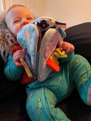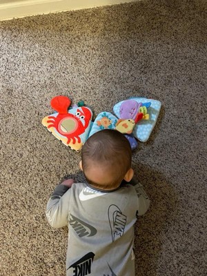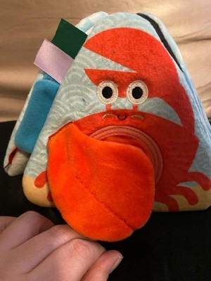 - A beautifully designed skill-booster -- developmentally appropriate features include a crab with peek-a-boo mirror and squeaking claw, multi-textured tabs and ribbons on a jellyfish, and an attached tuck-away fish that stores in a pocket