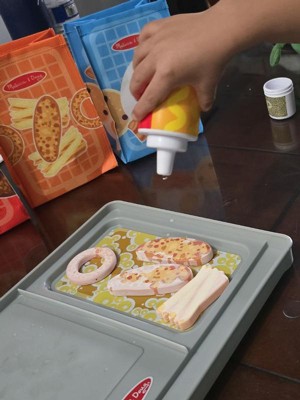 [This review was collected as part of a promotion.] This Flip & Fry set by Melissa and Doug is a cute toy but definitely messy! It's not a toy I would leave my boys to play with alone unless we're outside. But overall, my boys enjoyed it! I have a 2 and 3 year old and they were both amazed with the food changing looks when they got wet. They both kept fighting over the ketchup bottle rather than the spatula or fryer! What I wasn't too crazy about was the felt cheese/tomato/lettuce. The boys kept trying to put water on them and they just became a watery mess. Would've been nicer if they were plastic. The baggies that came along with the set were cute too but a little useless in my opinion. The spatula also was a little confusing until we realized we had to squeeze it. Aside from that, it was an overall fun toy!
