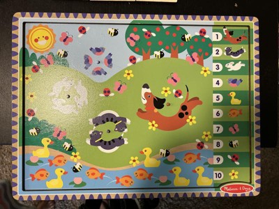 [This review was collected as part of a promotion.] My 3.5 year old absolutely loves this puzzle and can complete it on her own. The colors on the puzzle are vibrant and beautiful. I love that the puzzle has numbers and then moving cog wheels when completed. It is so fun to see my daughters face light up when she completes it. The wooden board is durable and the picture is painted beautifully on the board which makes it easy for the kiddo to complete the puzzle on their own. This is the high quality product that I have come to expect from Melissa and Doug and it didn’t disappoint. Highly recommend