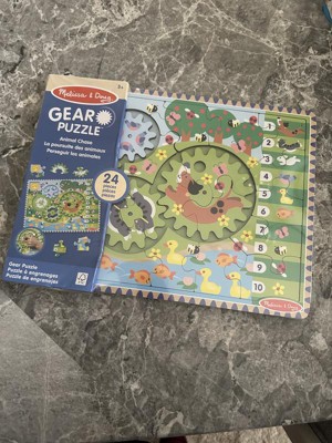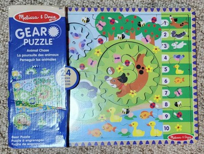 [This review was collected as part of a promotion.] I received Melissa and Doug animal chase ispy wooden gear puzzle! It easy to use! It's wonderful it has numbers for counting as well as different kind of animals! I love once you put the puzzle together my little one gets to turn the wheels on the puzzle which amazes my little and keeps him entertained!