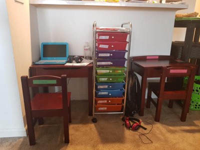 Perfect little desk for my 3 year old grandson!!! He loves it!!! Also loves pulling up the top and placing crayons and such inside.