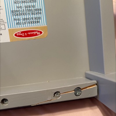 I was very excited to buy this desk for my little ones (2 and 4). I bought two identical desks about 8 months ago. One works fine, no issue. For the other one, however, the screws holding the metal arm to the top have popped out. I am unable to rescrew them since the top is particle board. I spoke to Target and since it is beyond their return policy they asked i go to the company. I called Melissa and Doug and they claim since it is normal wear and tear they will not cover the cost. The desk is literally 8 months old! and that too for children- how is this normal wear and tear? i would think with a company like M&D they would have quality products that withstand a child's "normal wear and tear" - particularly if the desk is less than a year old! absolutely livid given this desk is not cheap and now there is no fix! will think twice before buying from M&D again :-(