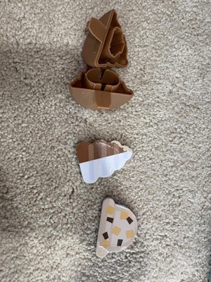 We bought this item for Christmas and after couple hours of play, the chocolate swirl piece spilt into two and the magnetic pieces when wet, the paper adhesive/sticked falls off. Not ideal for families with younger babies or kids who stick everything in their mouths since the magnetic pieces will wear off quickly since they are paper made.
