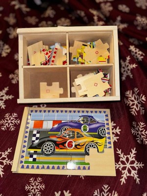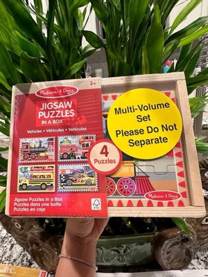 [This review was collected as part of a promotion.] Melissa and Doug always produce higher quality toys and this set is no exception. It came with two sturdier wooden boxes and each box includes 4 puzzles. The puzzle pieces are thick and hardier. The designs are cute and perfect for my kids. Only complaint is I wish there were more pieces but otherwise a great toy!