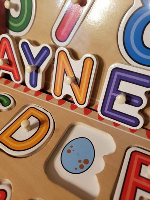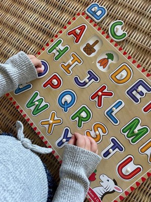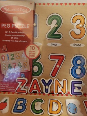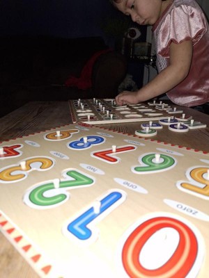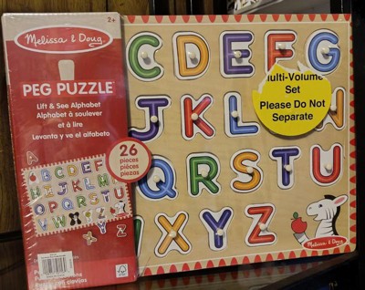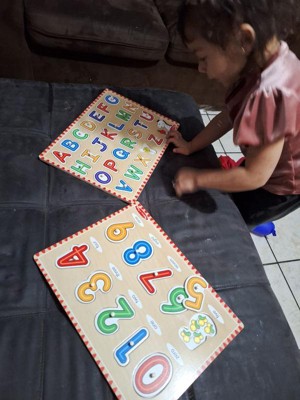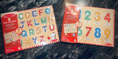 Melissa & Doug Wooden Lift & See Peg Puzzle Early Learning 2pk for Girls' and Boys' – Alphabet, Numbers