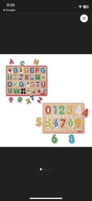 [This review was collected as part of a promotion.] My littles were so excited to receive Doug and Melissa peg bundle puzzel, they have played for hours, the 3 year old in one day can count to 12, the abc's are going good also
