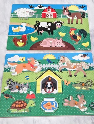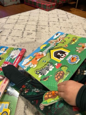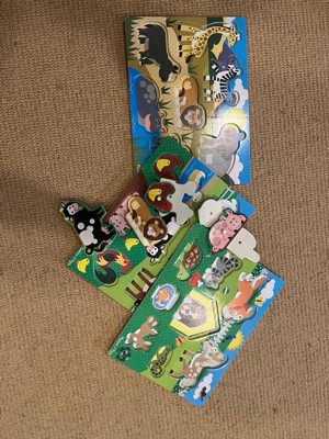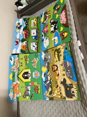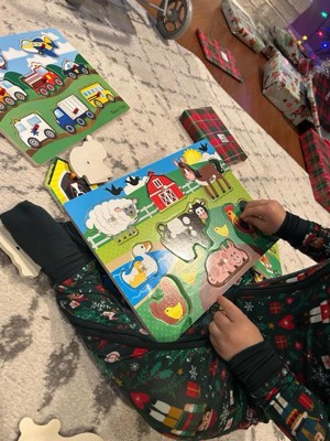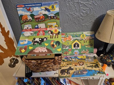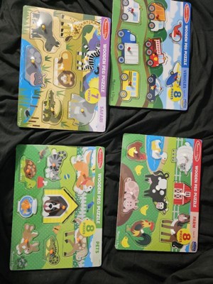 [This review was collected as part of a promotion.] I love anything and everything Melissa & Doug. My kids have been playing with their products for years. This puzzle set is absolutely adorable and I love how each puzzle piece has a peg to help the little one place the pieces. I'm so excited to give this set to my nephew