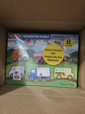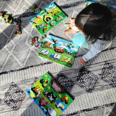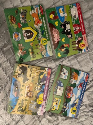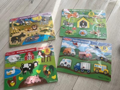 Melissa & Doug Wooden Peg Puzzle 4pk - Vehicles, Farm, Safari, Pets: Creative Thinking, Fine Motor Skills
