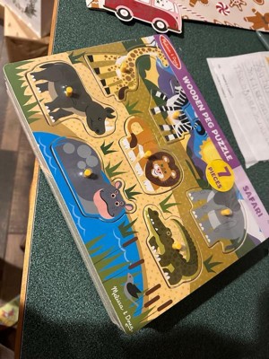 [This review was collected as part of a promotion.] Melissa and Doug’s puzzles are the best! They’re nice and sturdy because they’re made out of wood. The pegs add an easy element for small hands to pick the pieces up and put them into the holes. And the different themed puzzles are a fun way to mix things up!