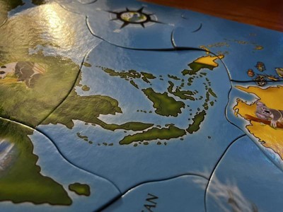 This puzzle offers a unique educational experience with its continent-shaped pieces, making it engaging for children. However, many guests have expressed frustration due to the poor quality of the pieces, which often do not fit together well and can be warped or bent. While the vibrant colors and graphics are appreciated, the lack of traditional puzzle connections leads to difficulties in assembly, making it less enjoyable for young puzzlers.
