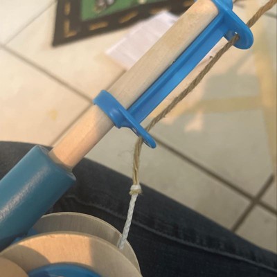 A: Hi Gail, The line can be rethreaded through the guides and wound around the reel. Your Friends at Melissa & Doug