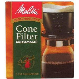 The Melitta 640446 Coffeemaker is a refreshing twist on your morning brew. The traditional drip method is easy to do and worth every aromatic moment. Will make six cups of your favorite coffee or tea by simply pouring hot water over your freshly ground coffee or loose tea leaves. The coffeemaker uses number 4 paper filters.