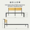 Mellow KASI Metal & Wood Platform Bed Frame with Built-In Headboard Shelf