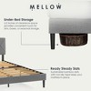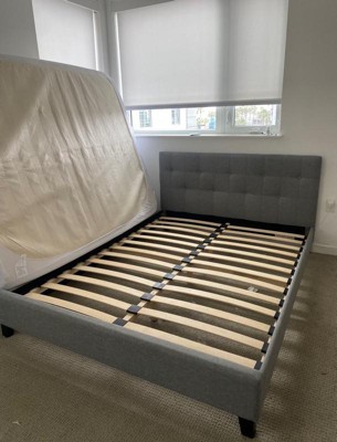 Elevate your sleep sanctuary with the Mellow Olena Upholstered Platform Bed Frame, where thoughtful design meets modern elegance. Wrapped in a soft, light grey polyester fabric, this queen-sized frame features a striking diamond channel tufted headboard, adding a touch of sophistication and comfort to any bedroom décor. Whether your style leans classic, contemporary, or minimalist, Olena blends seamlessly into your space.Designed for both aesthetics and functionality, the Olena bed frame comes equipped with sustainable bamboo slats—a durable and eco-friendly alternative to traditional wood. These slats provide strong mattress support while promoting airflow, helping to maintain a fresher sleep environment. With this frame, you can skip the box spring altogether, thanks to its supportive platform structure that accommodates memory foam, latex, and spring mattresses with ease.With an impressive weight capacity of up to 1,000 pounds, the Olena frame offers exceptional strength and stability, making it a reliable choice for years to come. Whether sleeping solo or sharing the bed, you’ll rest easy knowing this platform is built to last.Assembly is a breeze with all tools and instructions included, no need for extra trips to the hardware store. You'll be ready to relax in under an hour, with intuitive assembly steps that ensure a secure and stable fit.Enjoy peaceful, noise-free sleep every night. Engineered for stability, the Olena’s structure eliminates the creaks and squeaks often associated with traditional metal frames. This quiet, sturdy foundation gives you the restful sleep you deserve......