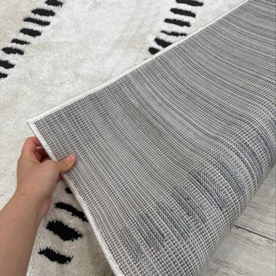 Introduce a touch of elegance to your space with our contemporary area rug. Crafted with precision in Turkey, this power loomed piece features a sleek ivory and black palette that complements modern interiors. Measuring 5 feet 3 inches by 7 feet 6 inches, its medium rectangle form fits seamlessly into various room layouts.