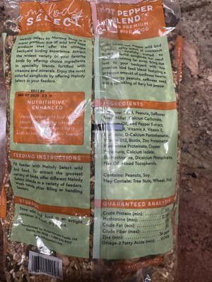 - Feeder Recommendations: Melody Select Hot Pepper blend can be used with a tube, hopper, or platform bird feeder.