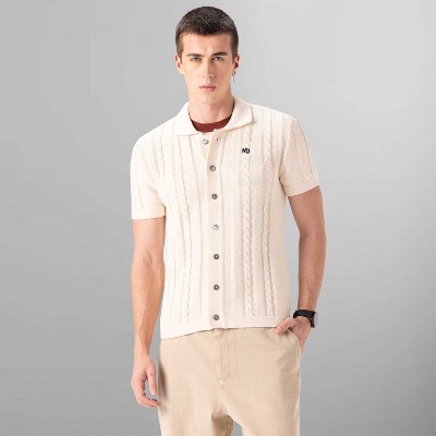 Product Name: Members Only Women's Cable Knit Vintage Short Sleeve Polo Cardigan Sweater - Off-White - Medium