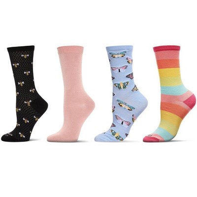 Keep your tootsies toasty all winter long with these women's novelty crew socks. They're crafted for cozy comfort in a super-soft fine-gauge knit, complete with a smidge of spandex for shape-keeping custom fit. Plus, they're covered with festive knit-in patterns that capture the charm of the season. Great gift for gals who love winter.