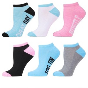 If you need motivation to either get to that workout or give yourself a day off, let our Cheat Day socks be your lifeline. This six pack of low cut socks, with three emblazoned with motivational messages like "Cheat Day," "Hustle," and "Jog On," and three unmarked socks, all in a blue-pink color scheme, has half cushioning for an athletic feel. This burst of color and encouragement will have your hour of exercise a day - or your cheat meal - done in no time.