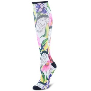 Memoi Floral Classics Cotton Blend Knee High Sock Black One Size - 1 of 2