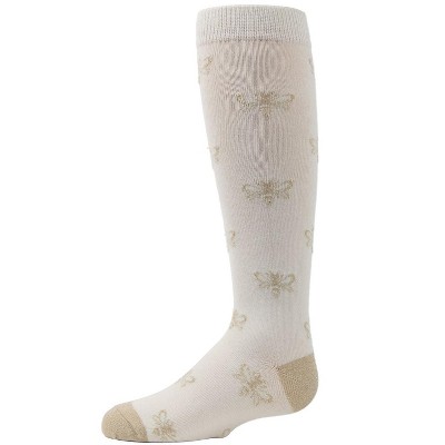 Memoi Girls' Busy Bee Glitter Cotton Knee High Socks