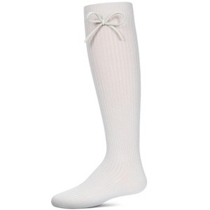 Memoi Girls' Ribbed Bow Knee-High Socks - 1 of 3