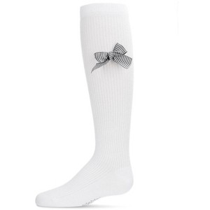For a formal sock that will wrap your girl's outfit up, you won't want to miss our Herringbone Thin Ribbed Knee high. This thin ribbed solid base knee high sock has a beautiful herringbone patterned bow for a touch of glamour for your little gift. Made with a cotton blend, these socks are comfortable so she'll wear them the whole duration of the party. Available in multiple colors for multiple occasions!
