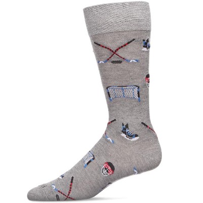 Love hockey? Show your support for this legendary sport with these classy men's novelty socks. They're covered all over with a colorful pattern depicting hockey sticks, helmets, and more. Plus, they're crafted for ultimate comfort with premium rayon from bamboo, known for its buttery softness.