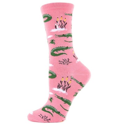 Later, gator! Wave goodbye as these creatures slither their way across the swamp, past reeds, frogs and weeds. And be thankful that these gators are just cute characters on a cuddly pair of bamboo crew socks.