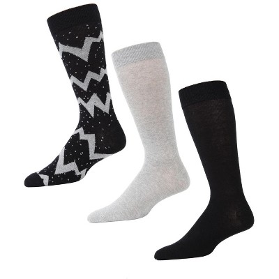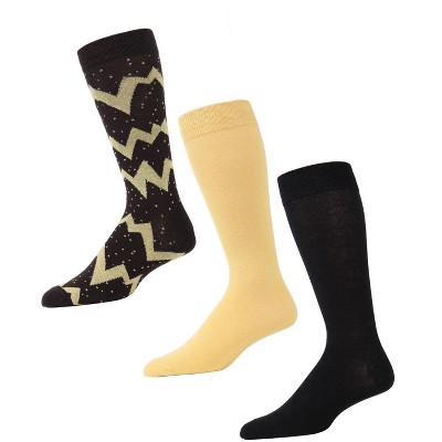 Memoi Men's 3 Pair Pack Lightning Bolt Cotton Blend Crew Socks
