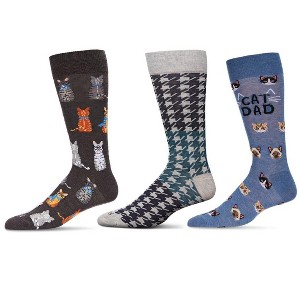 MeMoi Men's 3 Pair Pack Novelty Pet Lovers Crew Socks - 1 of 2