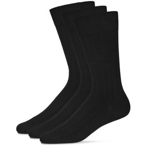 Memoi Men's 3 Pair Pack Ribbed Extra Wear Cotton Blend Crew Socks - 1 of 4