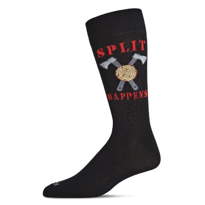 When split happens, these socks help. Our Split Happens Bamboo Blend Crew Socks are made from comfy rayon-from-bamboo and feature an embroidered design perfect for the Hatchet-thrower in your life