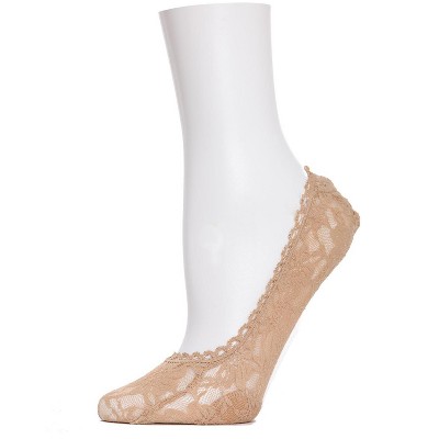 A perennial best seller and most-wanted fashion liner, our pretty daisy no-show socks offer more than just a pretty face. Featuring a padded built-in ball of foot cushion, so you'll feel like you're walking on air, along with a reinforced heel grip so liners stay securely in place and won't slip down. Elegant lace design on supple, durable nylon makes this a must-have.