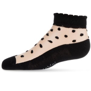 For a formal sock that is absolutely spot on, you won't want to miss our Sheer Dot Anklet. This sheer base sock has a scalloped solid cuff alongside flocked dot detailing. Made with a cotton blend, these socks are comfortable so she'll wear them the whole duration of the party.