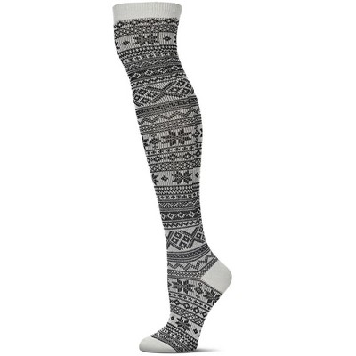 Memoi Snow Flakes & Stripes Over The Knee Socks
