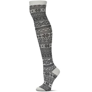 Memoi Snow Flakes & Stripes Over The Knee Socks - 1 of 3